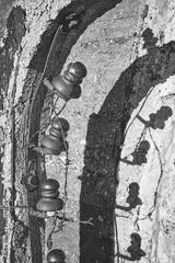 Close up picture of old rusty barbed wire fence, selective focus, color toning applied.