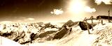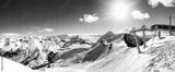chairlift in front of switerland alps mountain range panorama with blue sky