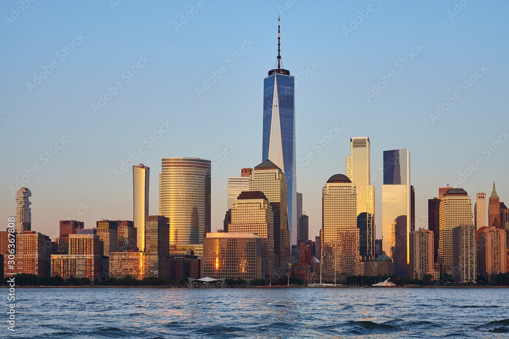 Manhattan skyline at sunset, New York City, USA.