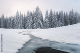 Fantastic winter landscape with snowy trees