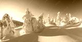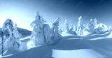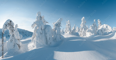 Panorama of fantastic winter landscape with snowy trees. Carpathian mountains, Ukraine, Europe. Christmas holiday concept