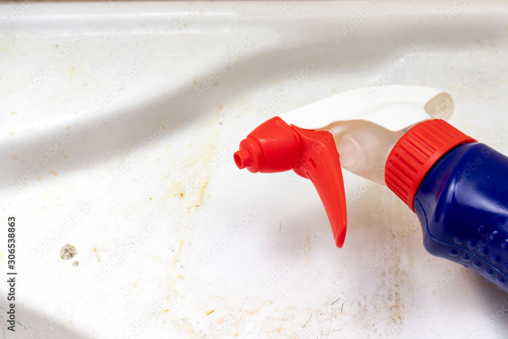 Means , tools for cleaning and desinfecting dirty rusty washbowl, basin with limrscale and soap stains