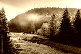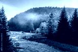 mountain river among the forest. wonderful nature scenery on a misty sunrise in springtime. waters of a rapid flow in morning light. estuary of tereblya and ozeryanka rivers