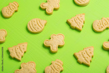 confectionery, cookies in the form of a Christmas tree, snowman, on a light green background