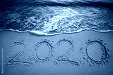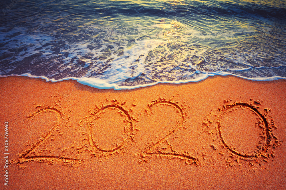 Happy New Year 2020 concept on the sea beach; sunrsie shot