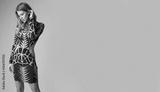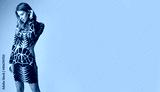 Fashion model looks super glam in that mini dress and high heels.
