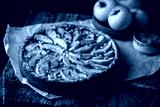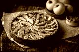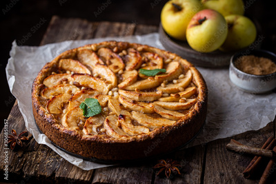Homemade delicious fresh baked rustic apple pie on dark background