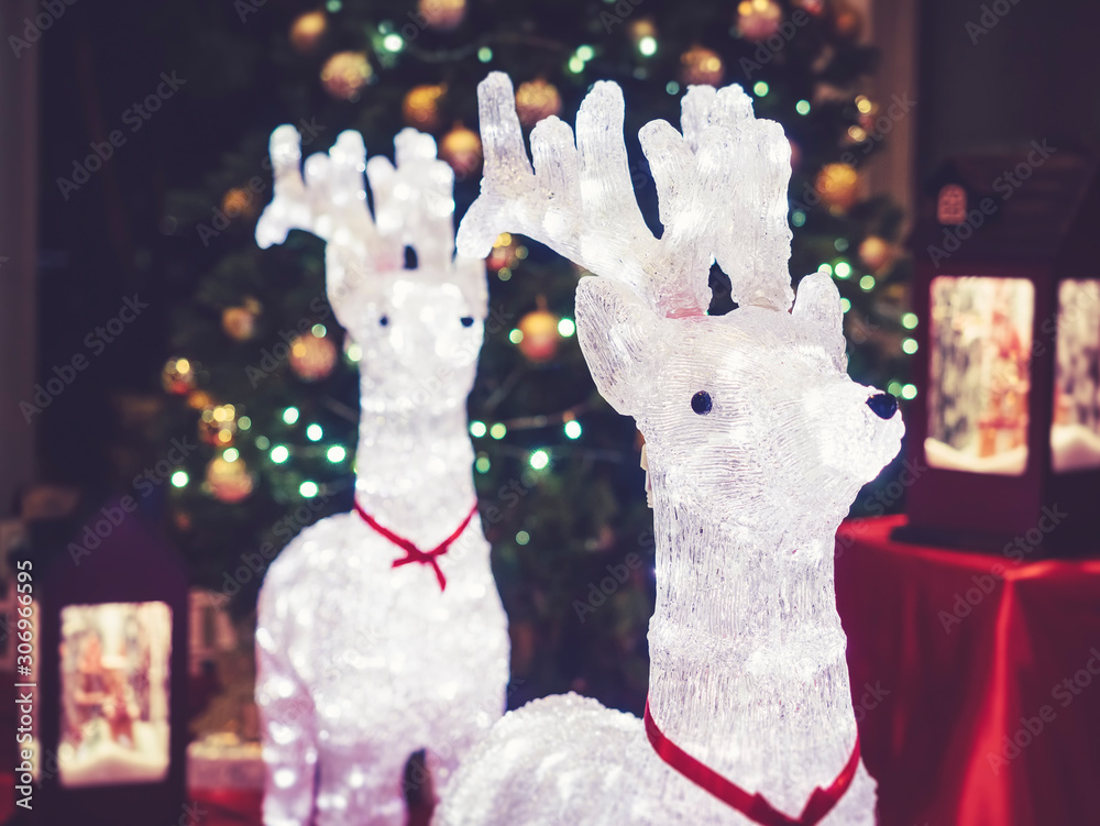 Christmas decoration Reindeer lighting with Xmas tree Festival holiday Background