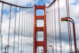 Golden Gate Bridge pylon and suspension cables; Golden Gate Bridge is a suspension bridge spanning the Golden Gate, the one-mile-wide strait connecting San Francisco bay to the Pacific Ocean