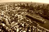 Aerial cityscape of Sydney Woolloomooloo suburb and historic wharf