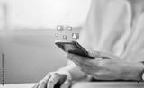 Woman hand using smartphone and show technology icon social media. Concept social network.