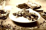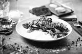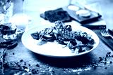 Octopus salad served on a plate in restaurant