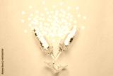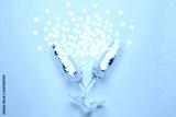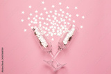 Champagne glasses with silver stars confetti on pink color paper background minimal style