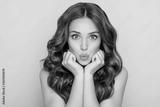 Close-up portrait of her she nice-looking attractive lovely feminine sensual cheerful funny girlish wavy-haired girl sending kiss pout lips organic detox isolated over beige pastel color background