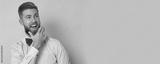 The young man with beard can't alive what's happening! He is super happy!
