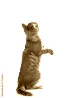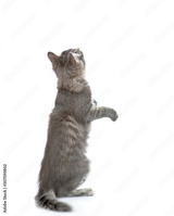 Cat sits in back view and looks up. isolated on white background