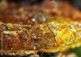 Close up embossed yellow resin on cherry bark tree