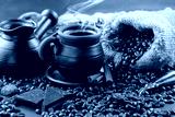 Black coffee on an old background in a cup