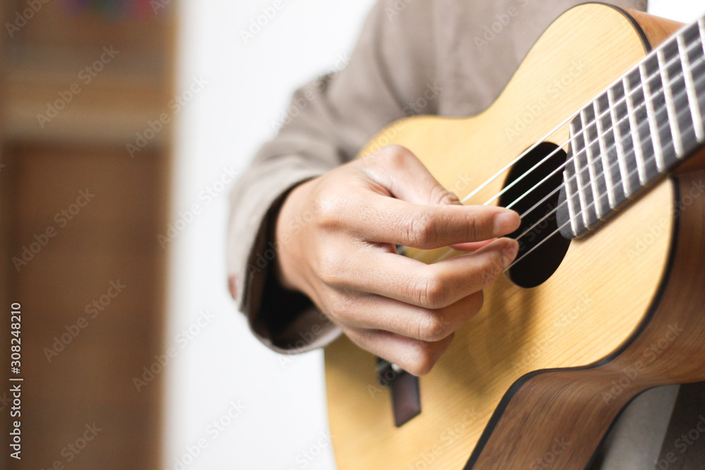 the guitarist is playing an acoustic guitar with blurred background