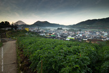 the beauty of the dieng plateau in the morning and the mist enveloping it