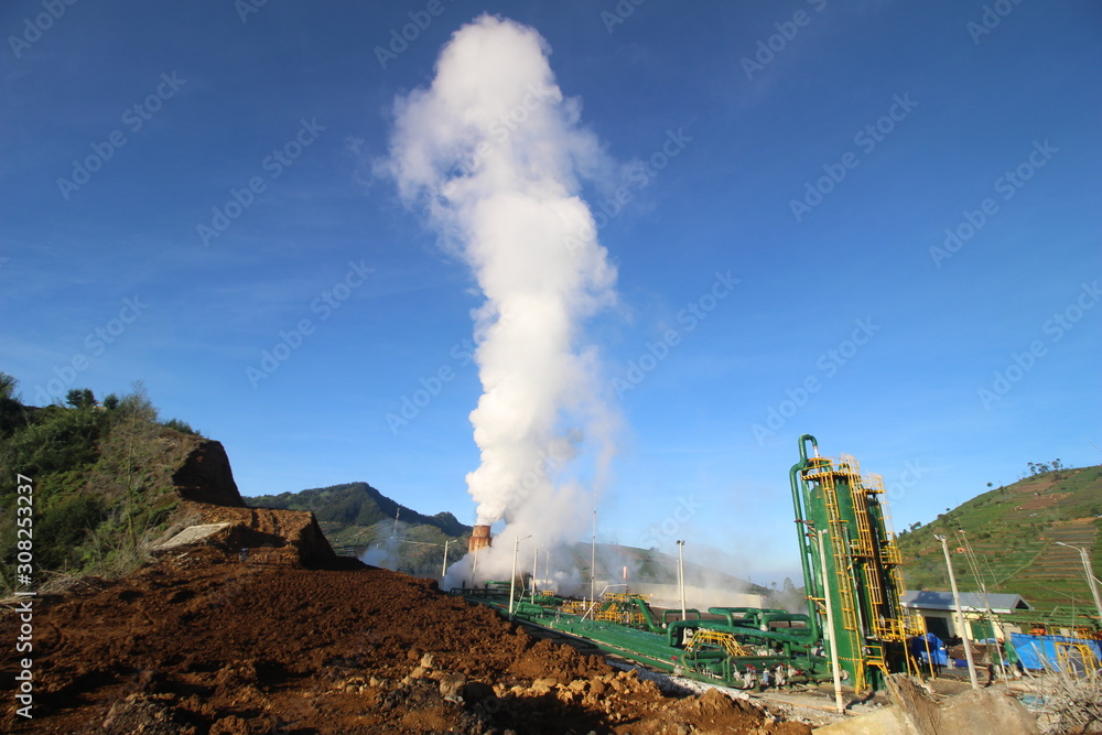 geothermal supplier that emits smoke which is located on an active mountain in Dieng ,Indonesia