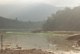 Beautiful reflection at Telaga Warna lake with plants surrounding it in sunny day