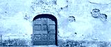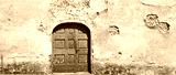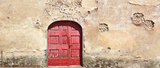 Typical Tuscan courtyard wall with a beautiful red gate.