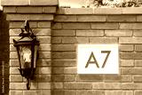 Antique electronic lamp, hanging at the wall in the building,soft focus.