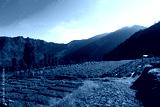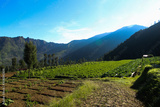 Beautiful views of green field gardens intercropping on the mountain slopes in the morning