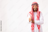 Young Business Arabian Thumbs up showing business successful with isolated on white background. Diversity concept with young arab.
