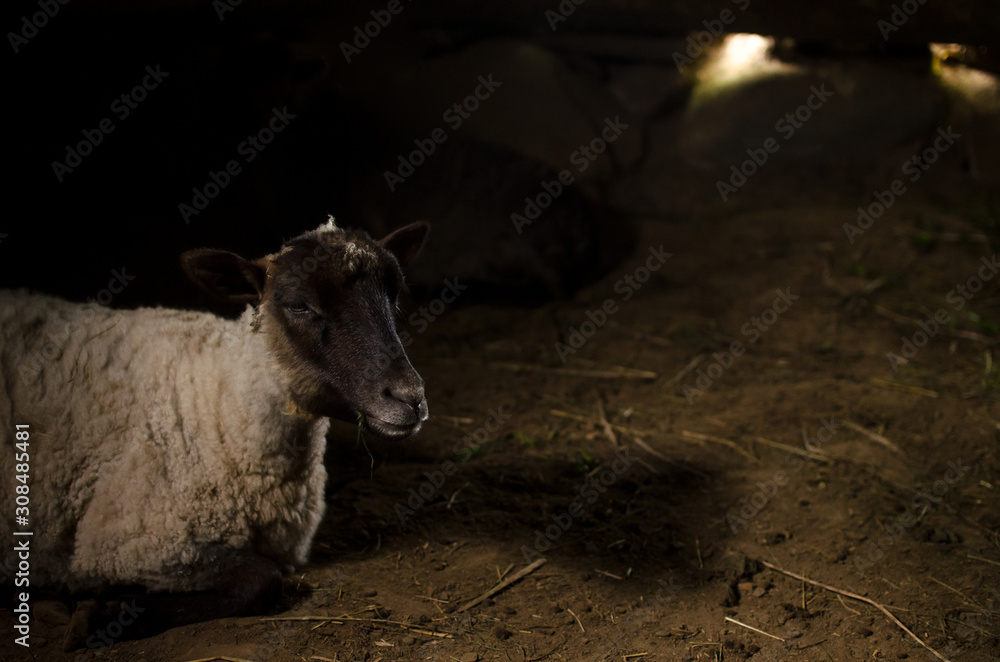 White sheep on dark background