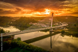 Aerial view of the Santa Isabel Queen modern steel cable bridge in Coimbra during sunset