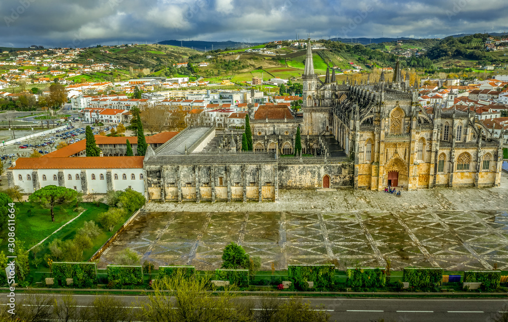 Aerial view of Unesco World Heritage site Batalha monastery one of the seven wonders of Portugal