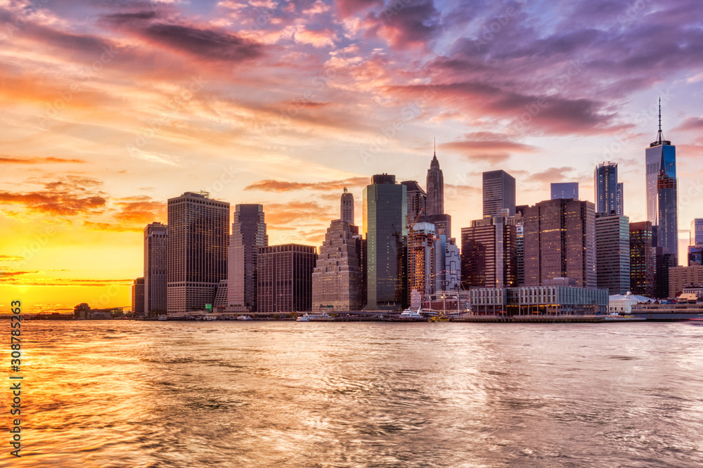 New York City Lower Manhattan at Sunset, View from Brooklyn