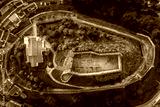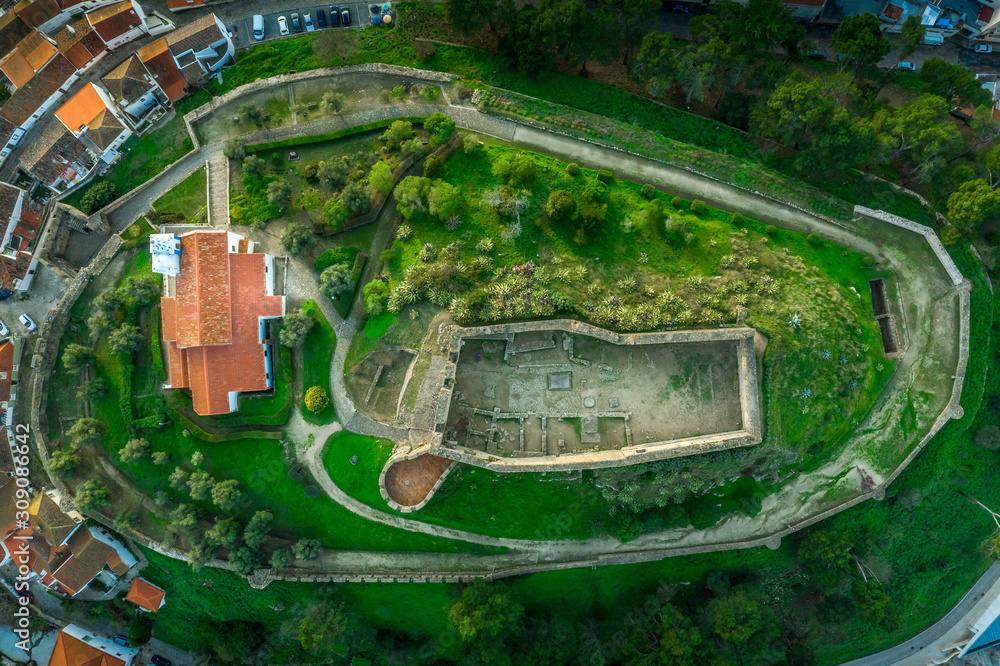 Aerial top down view of the ground plan of Torres Vedras castle in Portugal