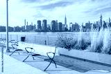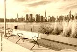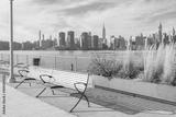 Empty Bench with Plants at a Park in Greenpoint Brooklyn New York looking out towards the East River and the Manhattan Skyline