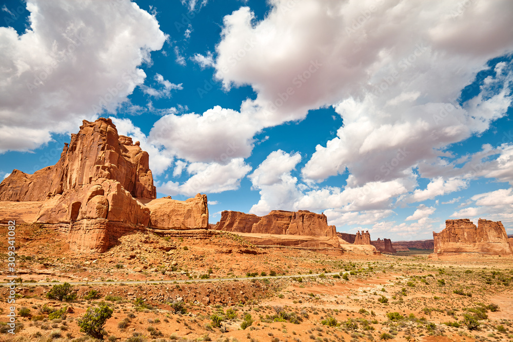 Rock formations in Arches National Park, Utah, United States.