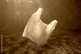 A white plastic bag adrift underwater pollution in the ocean