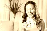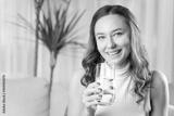 Woman drinking water at home