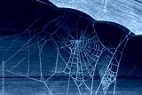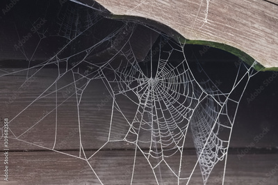 Hoar frost spider web as frozen white silhouette