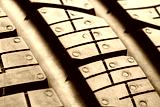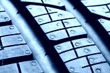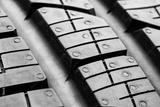road tread protector all-season summer tire. close up. the tread blocks and sipes for evacuating water from the contact patch. grousers