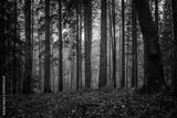 Dark tree trunks in a mixed autumn forest with colorful foliage, seasonal nature landscape in northern Germany