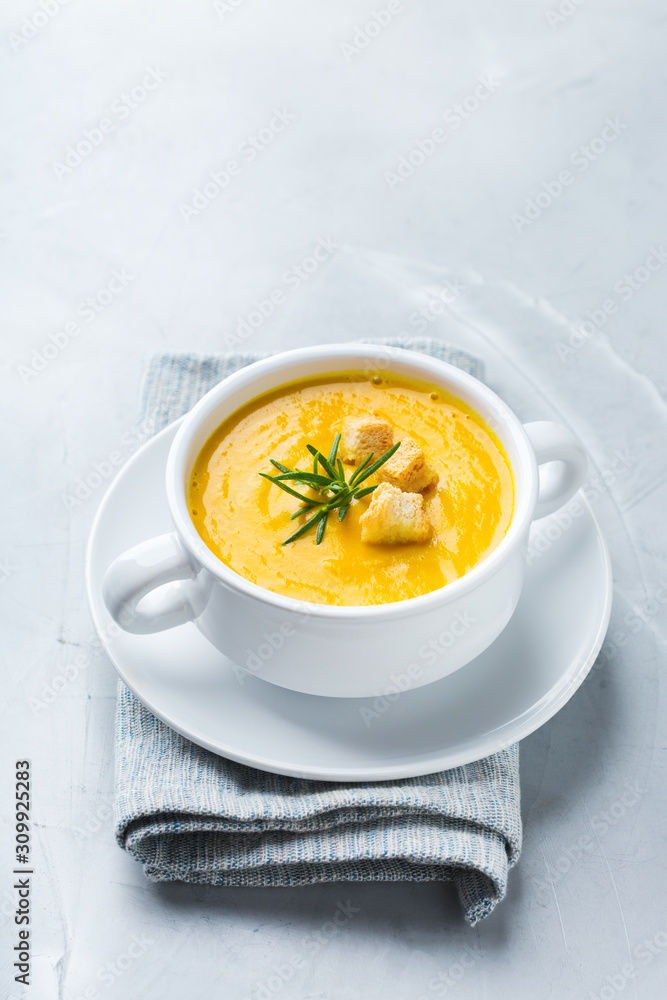 Seasonal spicy fall autumn creamy pumpkin and carrot soup