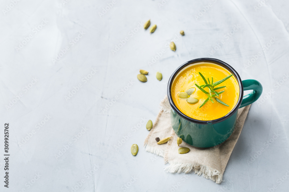 Seasonal spicy fall autumn creamy pumpkin and carrot soup