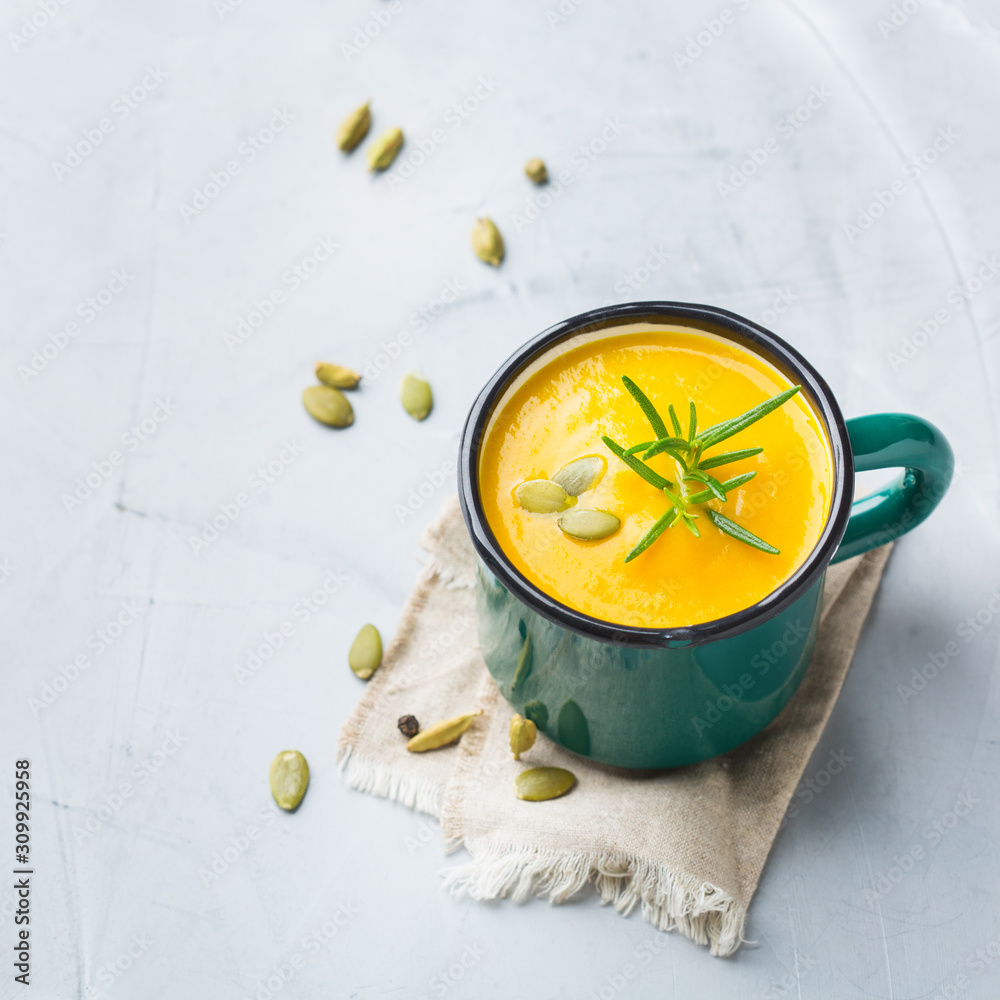 Seasonal spicy fall autumn creamy pumpkin and carrot soup