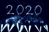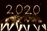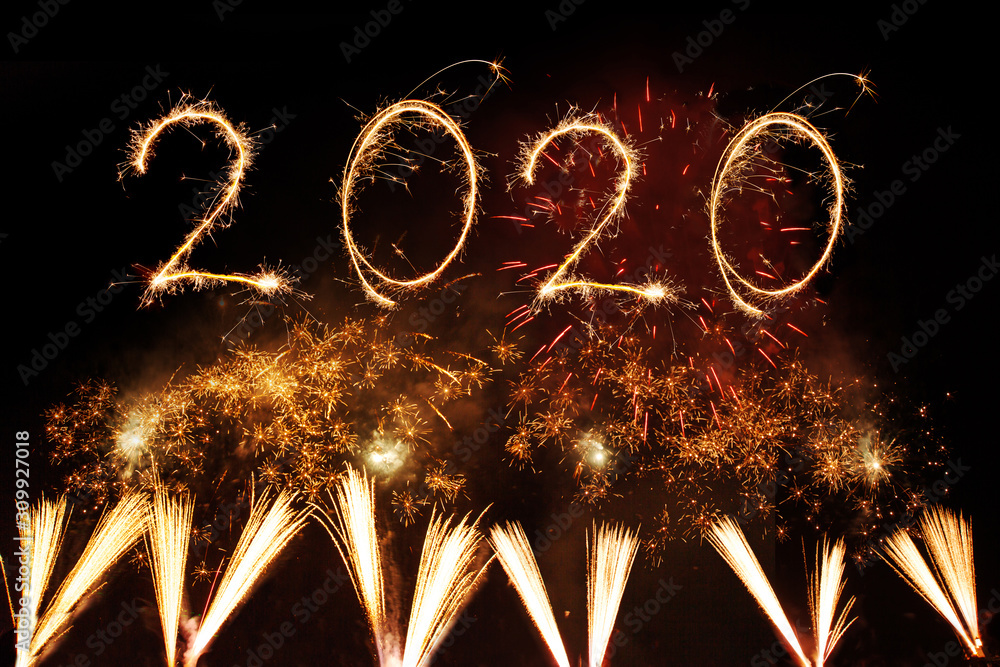 Happy new year 2020 written with Sparkle firework on black background,