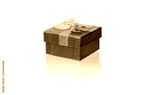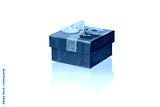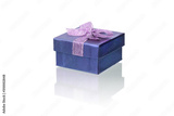 gift blue box, photo on a white background, with reflection and reflex. isolate close-up.