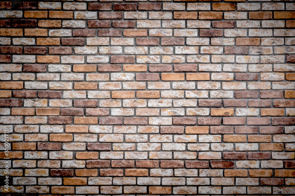 Orange small brick wall pattern for background and texture of ancient architecture backdrop
