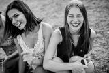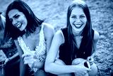 Close up of two girls having fun at the music festival
