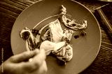Fish food on plate in michelin star restaurant